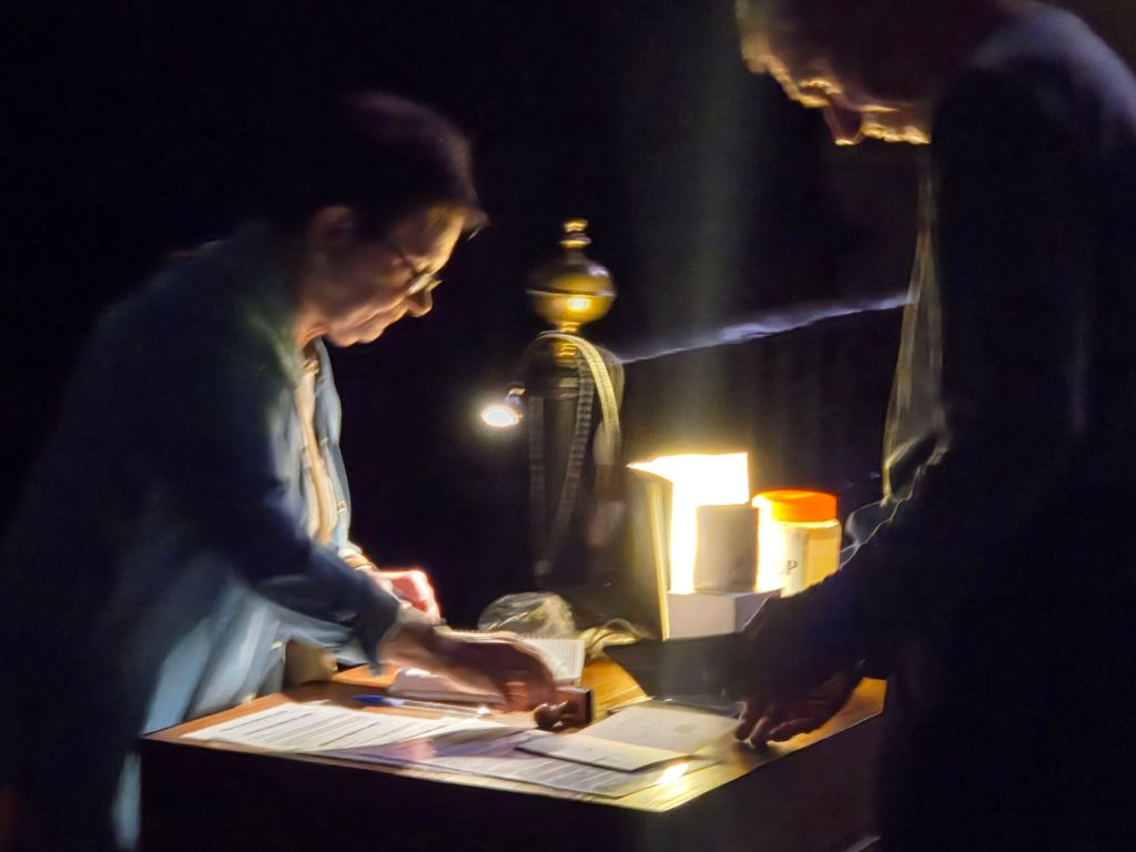 A helpful volunteer administers a sello (stamp) into Ed’s pilgrim passport (campostela) at San Pedro’s in Estella. This photo is reminiscent of Carravaggio, I thought…