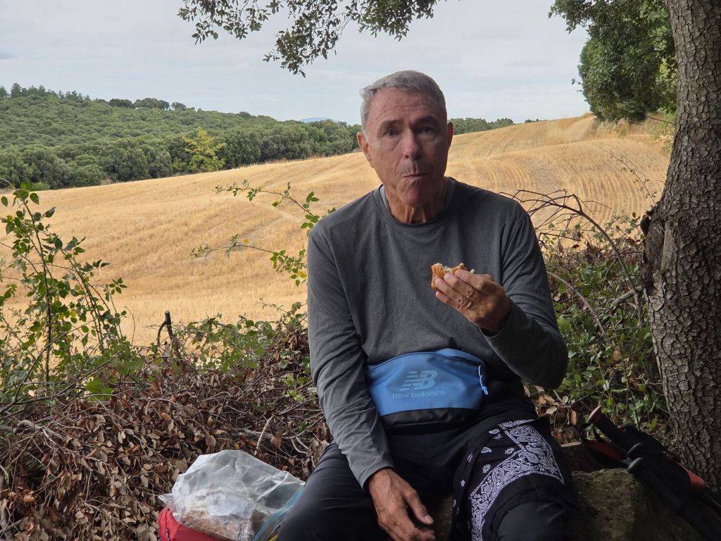 Our approach to each day is to start around 10:00 am and to walk without stopping for rest until we get to our destination. Today we walked for about 6.25 hours. We carry food and water and stop only to take a drink or get the food out of the backpacks. If we were to stop longer and sit down our joints would stiffen up. Experience tells us that it takes a while to get loose again, so we just don’t stop.
