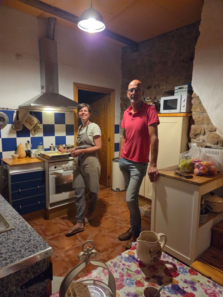 Lovely hosts Betty and Bart who are from the Netherlands and welcoming peregrinos for over 10 years, in their kitchen at Cass Rurale Montededeio in Villa Mayor de Montjardin (Navarre)Betty and Bart’s daughters Anna and Aileen, who are learning Spanish and English in addition to their Dutch at the local school