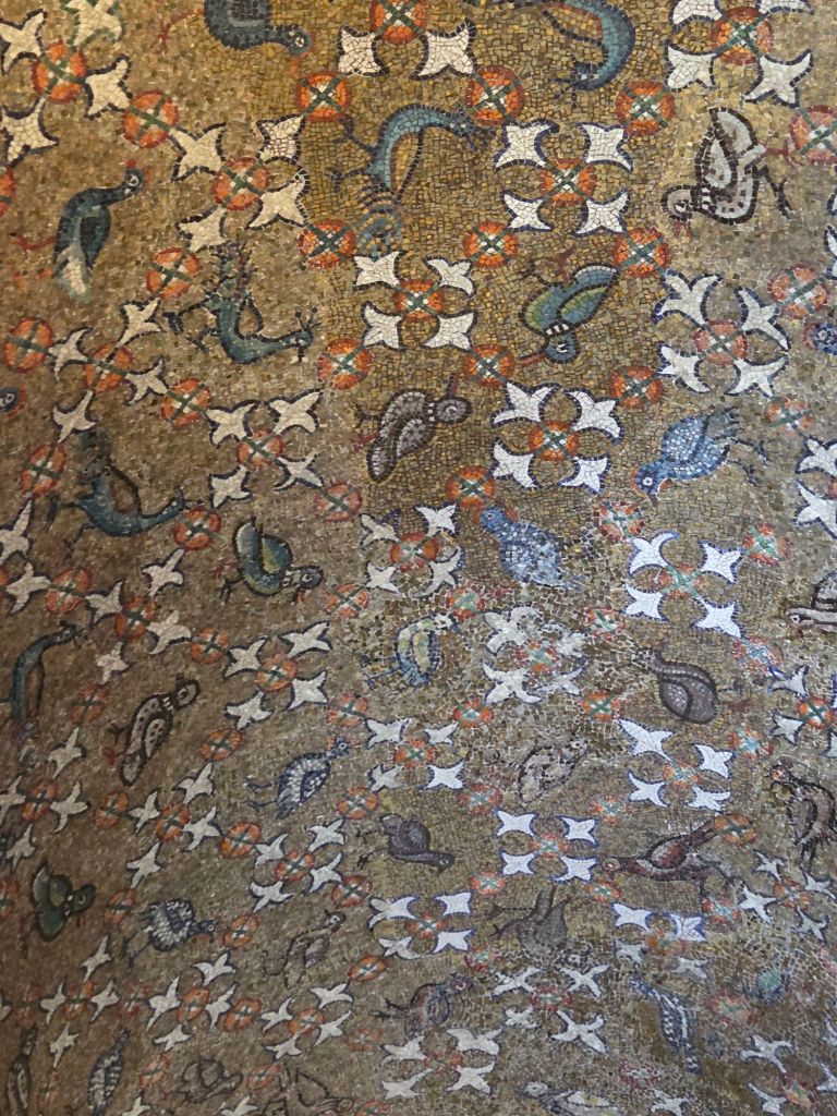 In our last full day in Ravenna, we walked to the Mausoleum of Theodoric, Museo Nazionale, and revisited our favorite sites in the different light, morning versus afternoon, of our first visit. We went to mass in the Church of St Francis (October 4) at the Church of St Francis, an ancient structure with a crypt full of water due to Ravenna’s high water table.