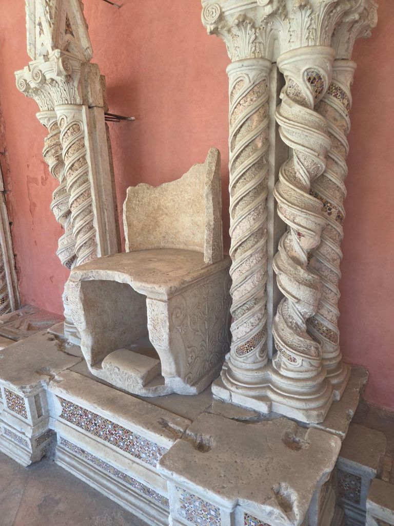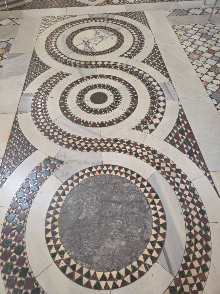Basilica di Santa Maria Maggiore is one of the major pilgrim sites in Rome. Above is a section of mosaic floor. San Giovanni Laterano (St John Lateran) is another of Rome’s 4 major papal basilicas, along with St Paul Outside the Walls, St Mary Major and St Peter’s.St john Lateran, the oldest basilica in Rome, has a quiet and ancient cloister.We were surprised to discover in the cloister a fragment of “The Altar of St Mary Magdalene” which once was believed to contain her remains and was originally placed in the basilica’s center aisle.