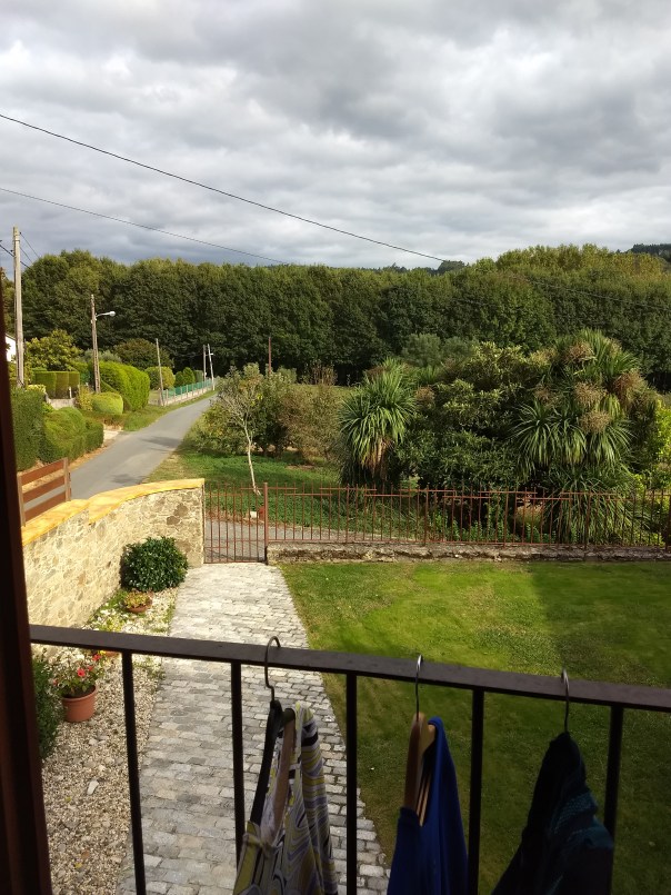 Penultimate night before Santiago: clothes dry on our balcony overlooking farm and woods.